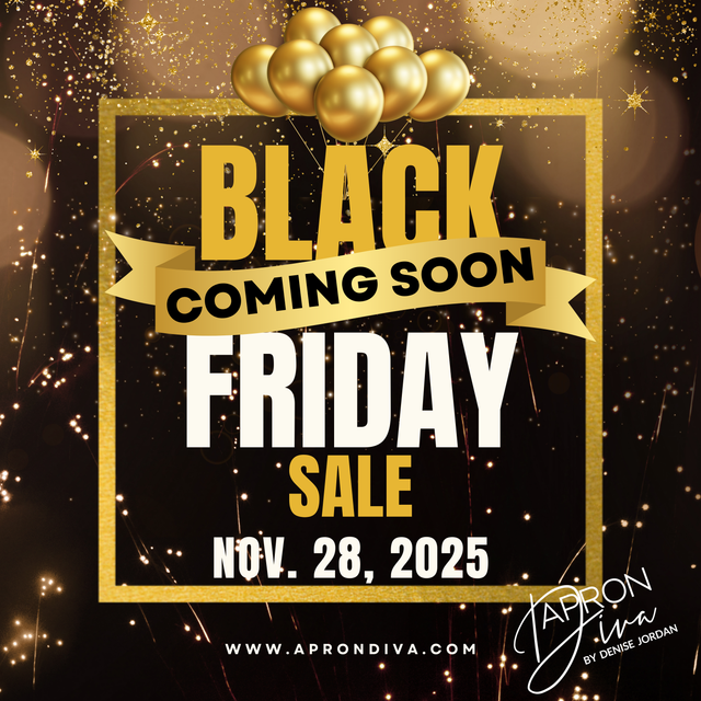 I am so excited to let you know that Apron Diva’s Black Friday Sale is happening this Friday, the 28th. This is one of my favorite times of the year because I love being able to offer you great discounts on the aprons you have had your eye on all season.