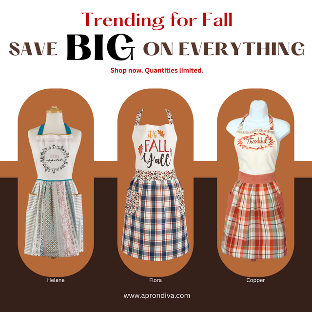 We have something for everyone. Don’t wait to shop, because quantities are limited and these fall favorites won’t last long. Visit Apron Diva today and find the apron that makes you ready for all the wonderful moments this season brings.
